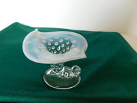 Pale blue cornucopia shape hobnail art glass